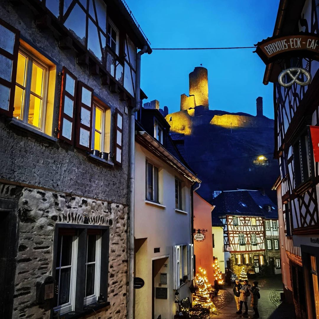 Unser Haus ist ca. 250 m vom historischen Ortskern Monreals, mit seinen schönen Fachwerkhäusern, die am Bachlauf der Elz eine herrliche Kulisse bieten, der spätgotischen Kirche und den mittelalterlichen Steinbrücken, entfernt. Die beiden Burgen (Phillips- und Löwenburg, die auch bestiegen werden kann) sind weithin sichtbar und thronen hoch über dem alten Ortskern.