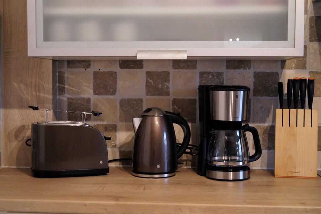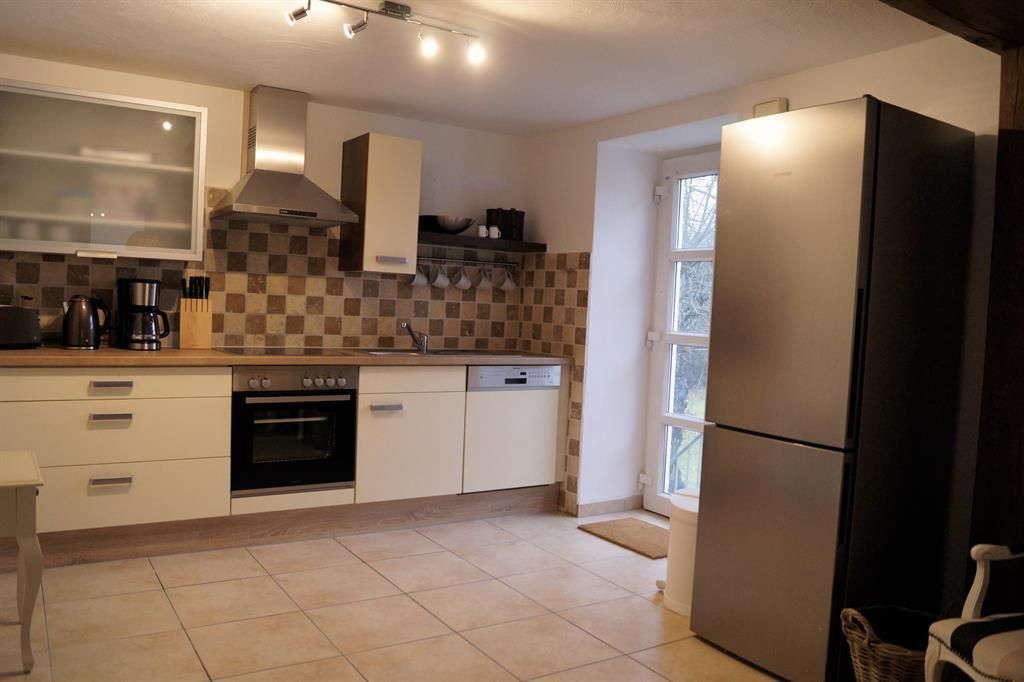 Im Erdgeschoß tritt der Gast direkt in den großen Wohnraum mit Küche, Esszimmer und Wohnzimmer. Natürlich ist die Küche mit einer Spülmaschine ausgestattet und das Wohnzimmer mit einem Flat TV und DVD Player. Auch ein Gäste WC mit einer Waschmaschine ist im Erdgeschoß vorhanden.