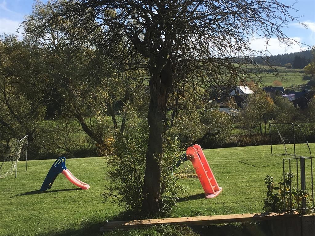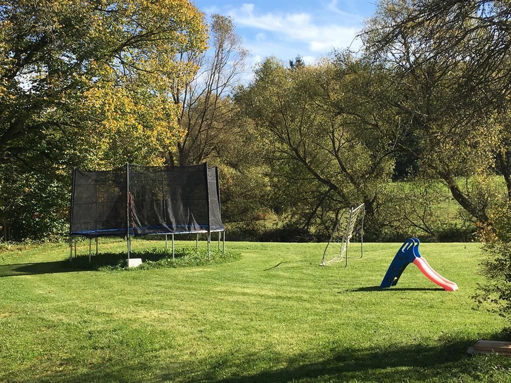 Die Aussenanlage lädt im Sommer die Kinder mit seiner Vielzahl an Spielgeräten ein. Ob Trampolin, Schaukel oder Fußballtore - hier sollte für jeden etwas dabei sein. Die Erwachsenen erholen sich derweil im Liegestuhl oder in der Hollywoodschaukel oder bereiten am Grillplatz das Essen zu.