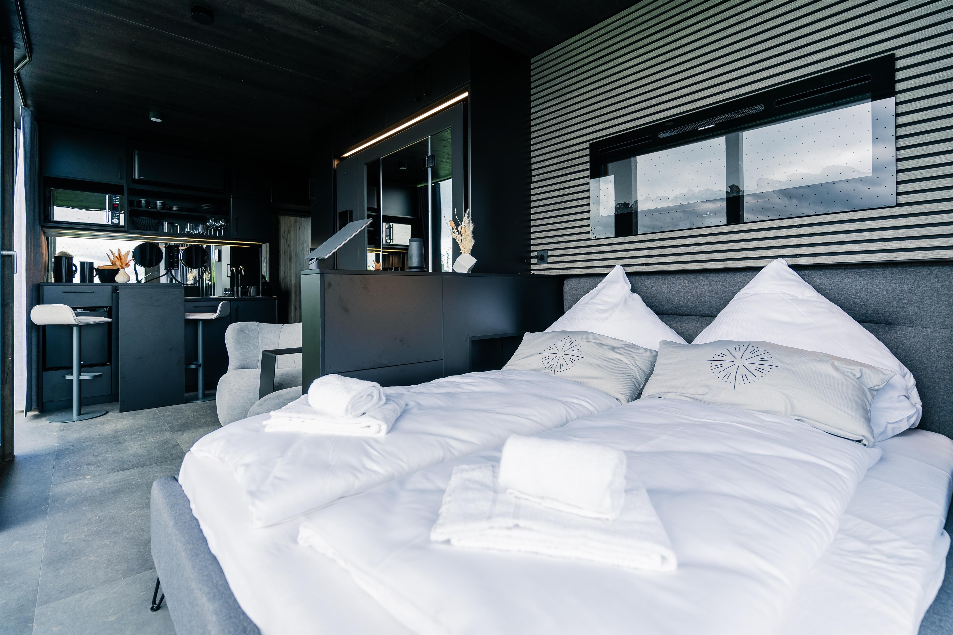 - acht mal 2-Personen Haus Cozy mit einem Schlafzimmer und 40 qm Wohnfläche, davon sind 4 mit Hunden erlaubt (max. 2)