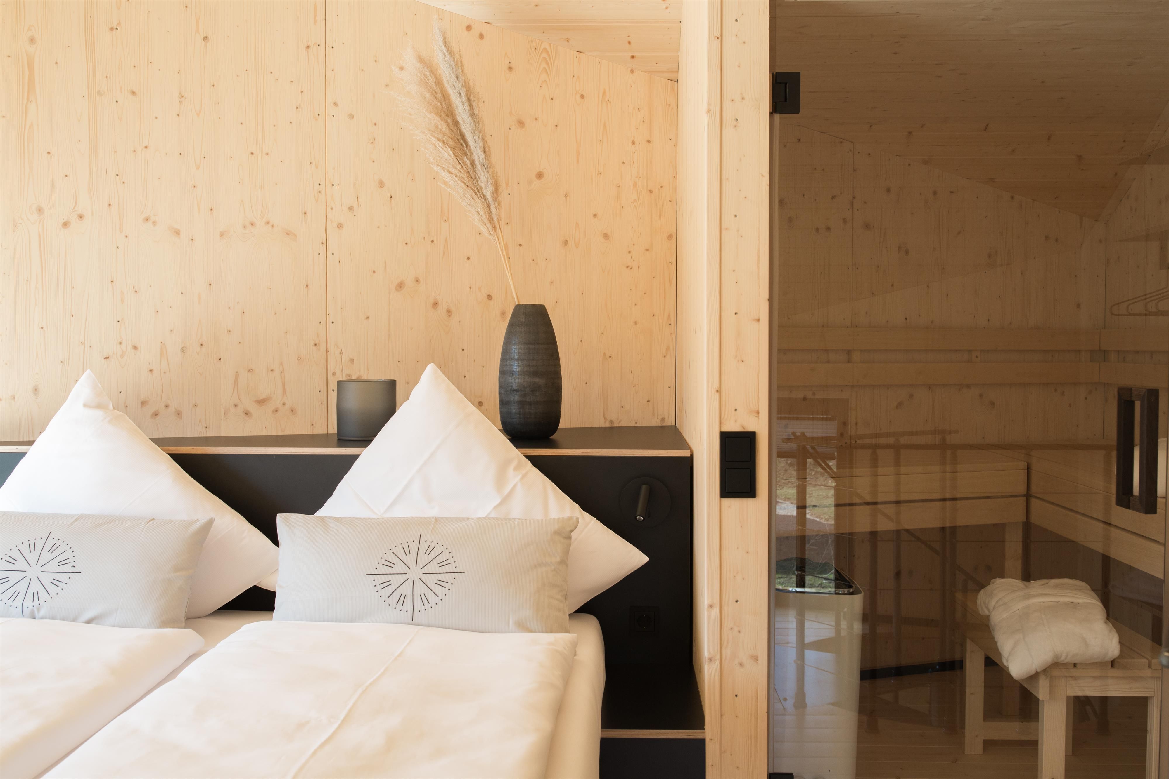- 9 mal 1-2 Personen Haus Style, 6 davon sind mit eigener Sauna. Alle haben eine Wohnfläche von 25 qm. 4 von den Häusern sind mit Hund erlaubt (max. 1)