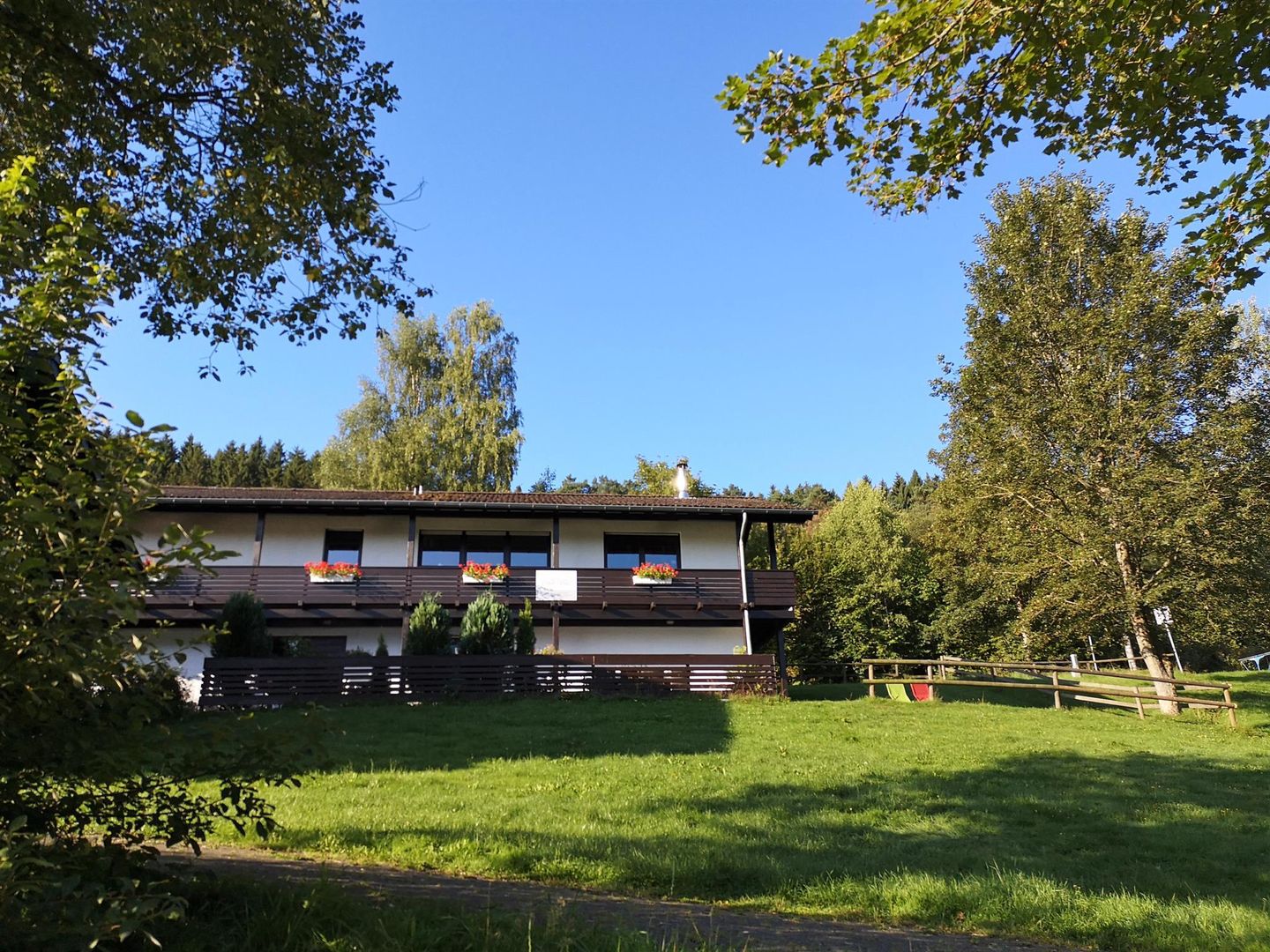 Zur Seeseite befindet sich eine großzügige Terrasse mit Gartenmöbeln und Liegen, Grill und Zugang zu Ihrer privaten Liegewiese. Der umlaufende Balkon, sowie die Terrasse sind eingezäunt. Genießen Sie von dort die herrliche Aussicht bei einer Tasse Kaffee, während Ihre Kinder und Haustiere sicher toben und spielen können.