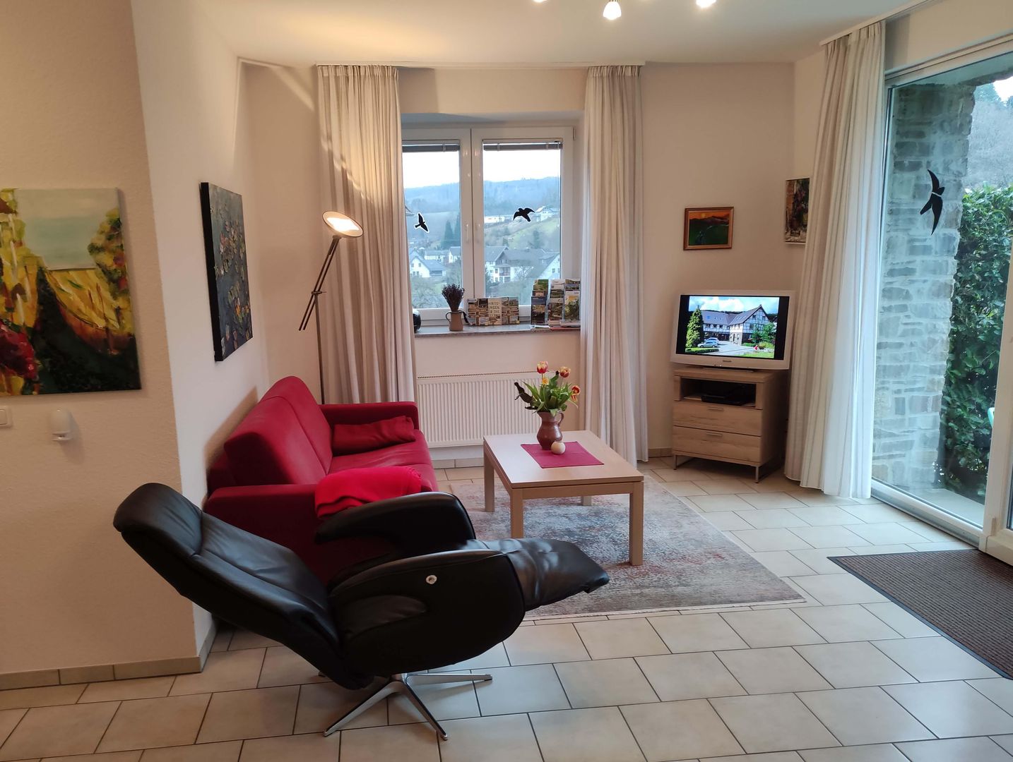 Moderne, helle und komfortable Ferienwohnungen, 200 m vom Rursee entfernt, bieten erholsame Tage. Von der Fewo/DG hat man einen herrlichen Blick auf den Rursee und den Kermeter-Hochwald (Nationalpark). Die Fewo/EG mit Sonnenterrasse. Auf Wunsch Kinderbett. Beide Fewo's sind mit sep. Schlafzimmern, DU/WC, Wohnraum mit ausziehbarer Schlafcouch und komplett eingerichteter Küchenzeile inkl. Mikrowelle ausgestattet. Bettwäsche und Handtücher sind im Preis inbegriffen.